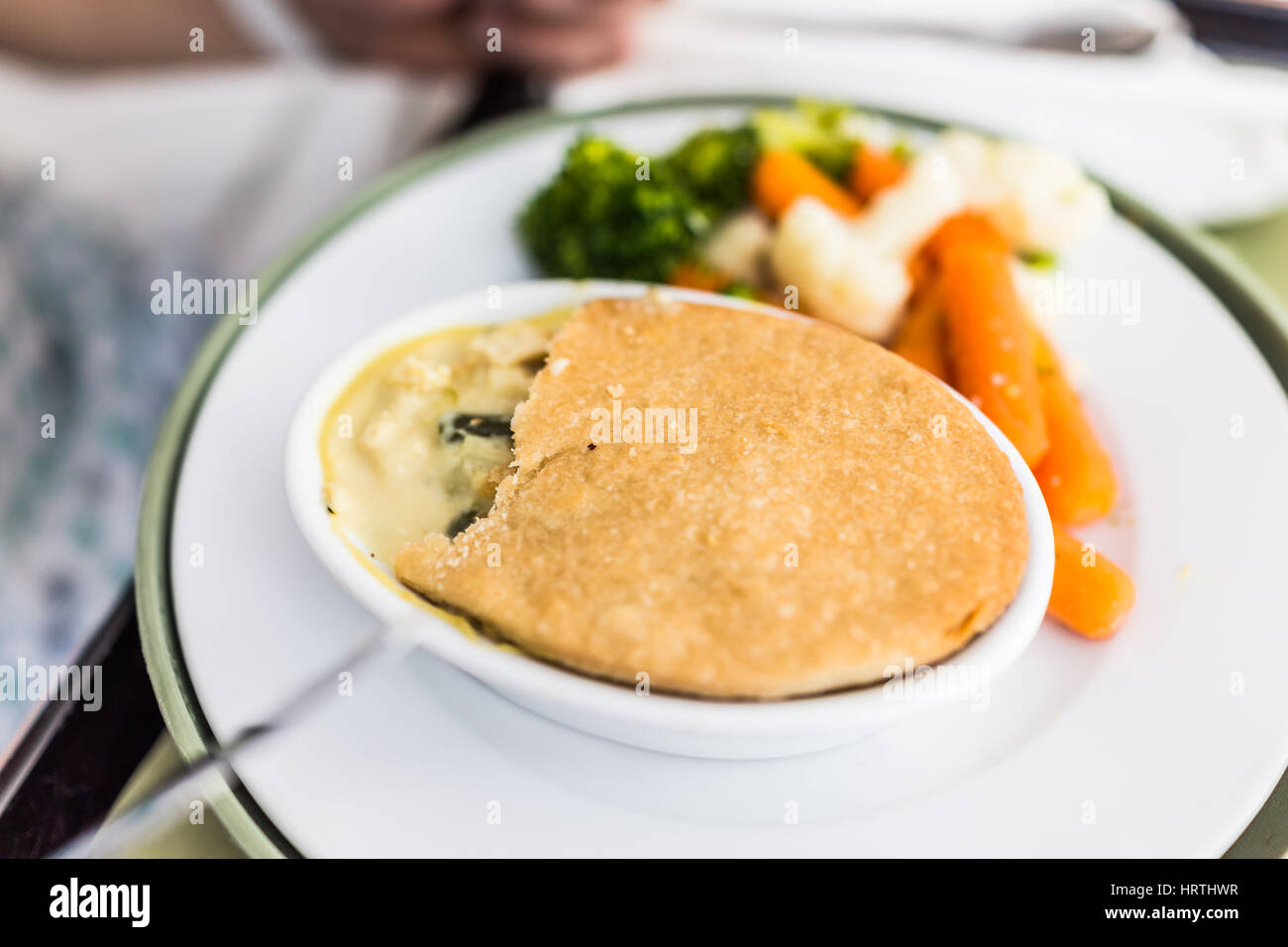 Chicken Pot Pie With Steamed Carrots Cauliflower And Broccoli