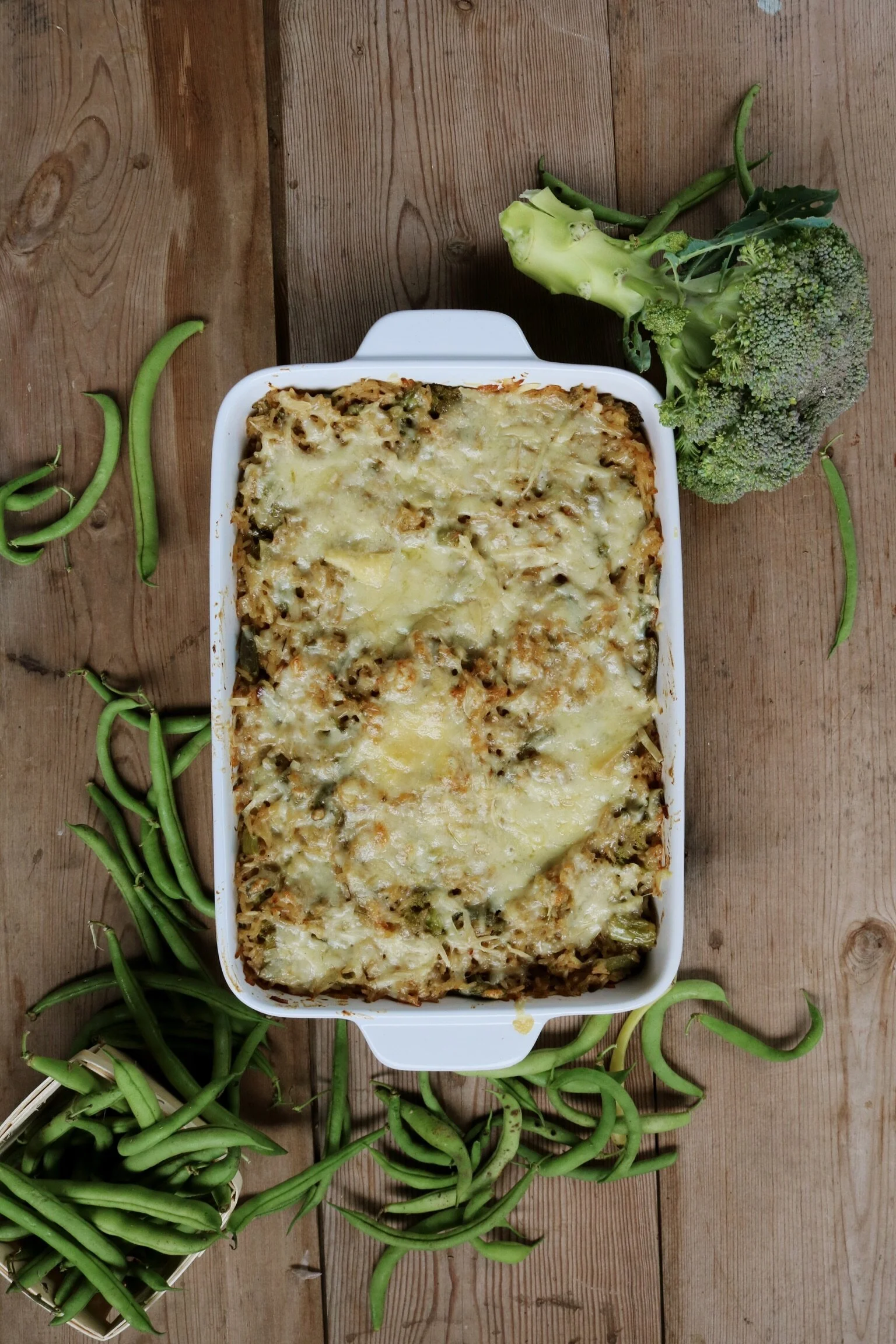 Cheesy Pasta Bake With Broccoli Green Beans And Linseed