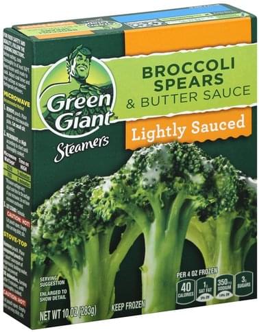 Green giant broccoli in butter sauce. Microwave up to 5 min longer. I would like to receive newsletters from green giant i would like to receive information from green giant including new products newsletters coupons announcements events and promotions. There are 13 calories in 1 spear 13 oz of green giant broccoli spears butter sauce frozen.
